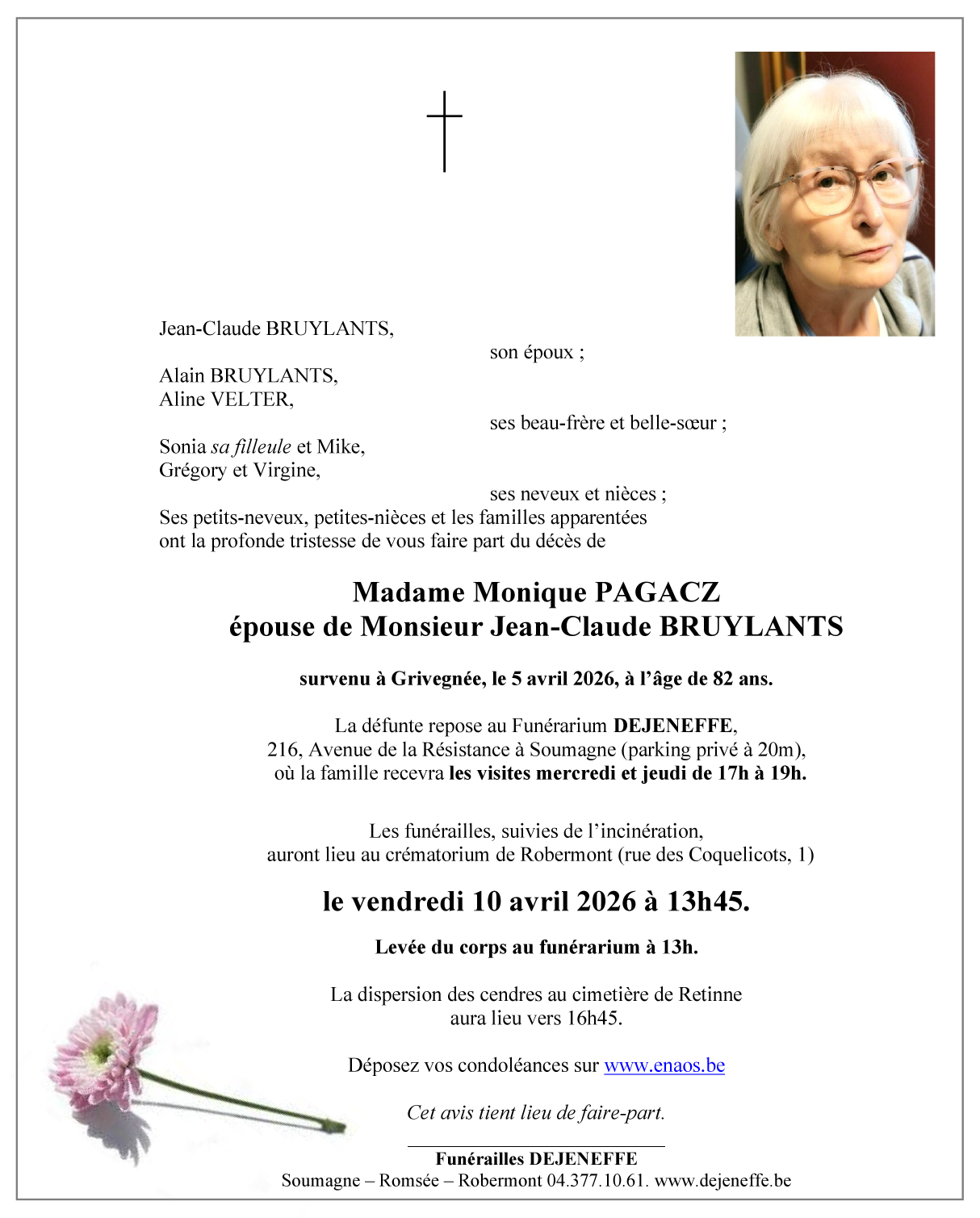 Died in Grivegnée (4030) on 05 April 2026 at the age of 82 years