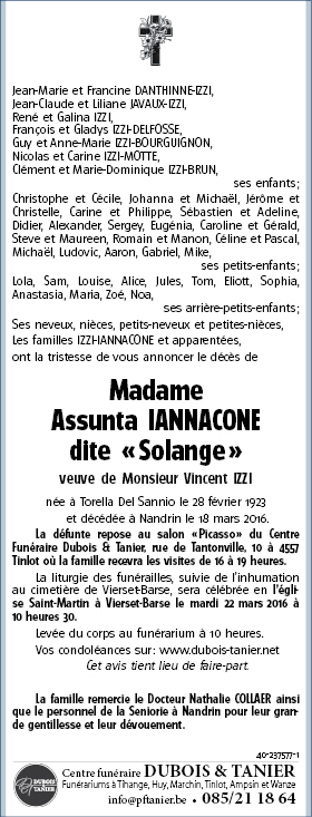 Fallecida en Nandrin (4550) el viernes, 18 de marzo de 2016 a la edad de 93 años
