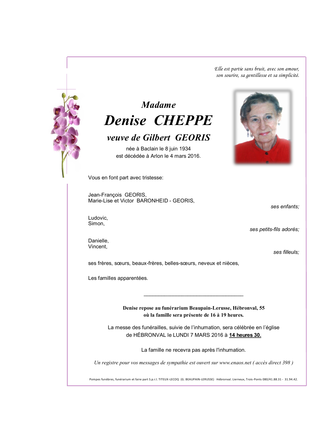 Died in Arlon (6700) on 04 March 2016 at the age of 81 years