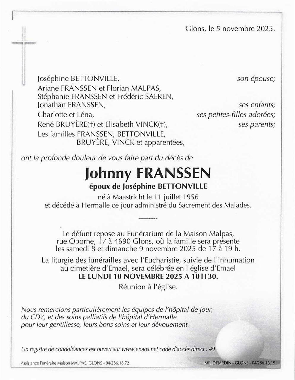 Overleden te Hermalle-sous-Argenteau (4681) op woensdag 5 november 2025 op 69-jarige leeftijd