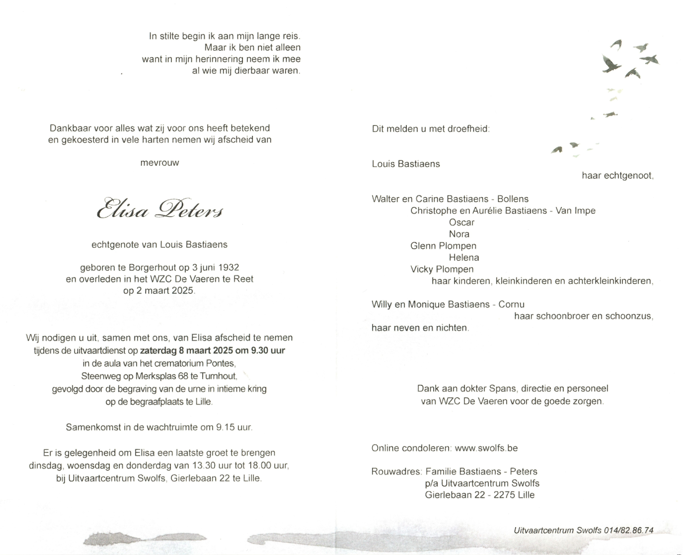 Overleden te Reet (2840) op zondag 2 maart 2025 op 92-jarige leeftijd