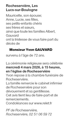 Décédé à Montaigu (85600, France) le dimanche 1 mars 2026 à l'âge de 72 ans