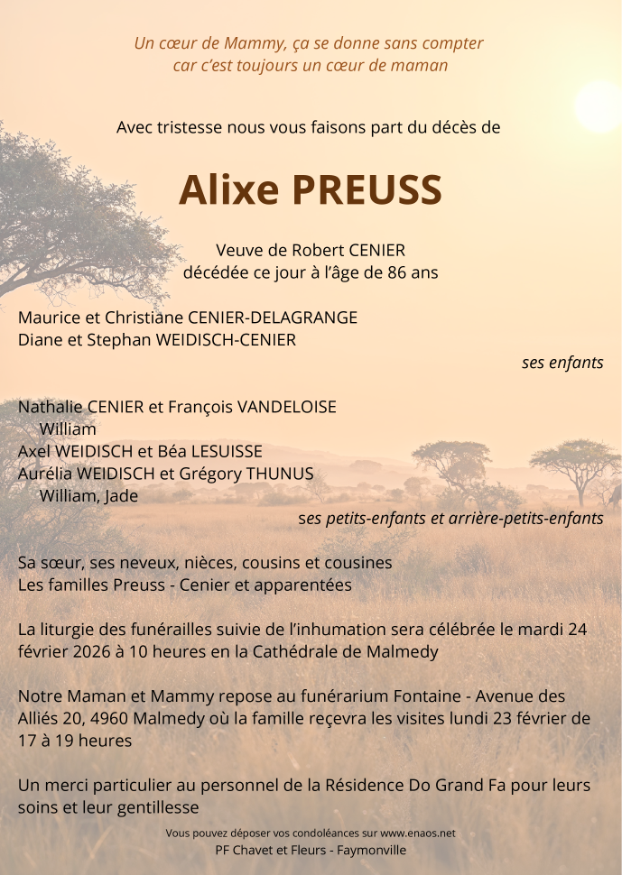 Overleden te Malmedy (4960) op vrijdag 20 februari 2026 op 86-jarige leeftijd