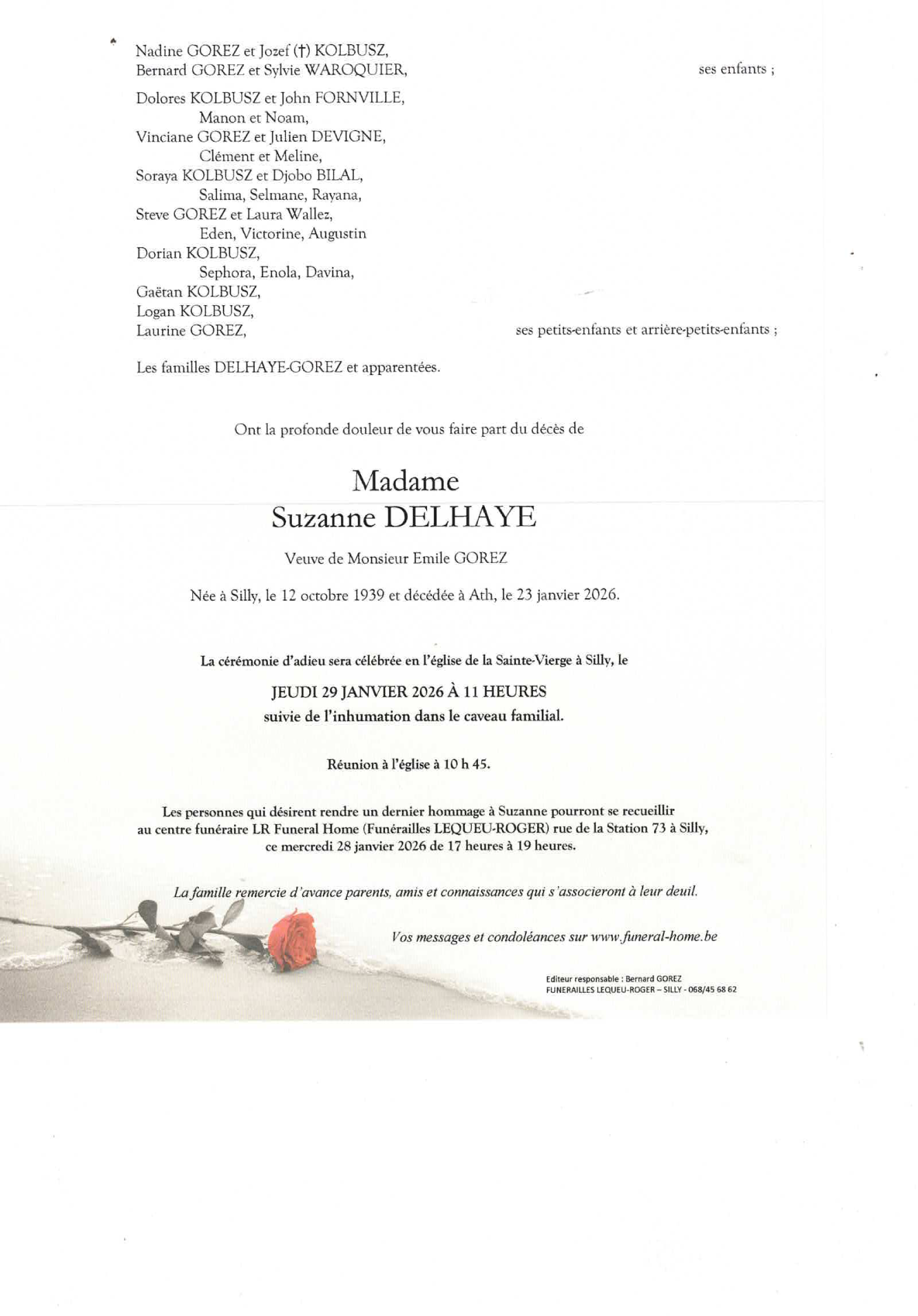 Décédée à Ath (7800) le vendredi 23 janvier 2026 à l'âge de 86 ans