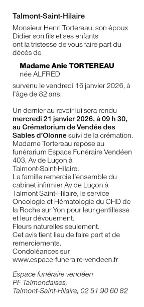 Madame Anie TORTEREAU née ALFRED