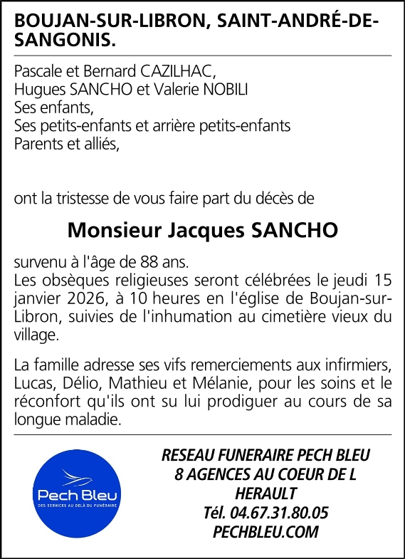 Fallecido en Boujan-sur-Libron (34760, Francia) el jueves, 8 de enero de 2026 a la edad de 88 años