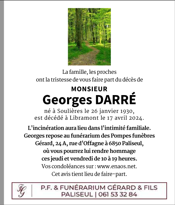 Fallecido en Libramont (6800) el miércoles, 17 de abril de 2024 a la edad de 94 años