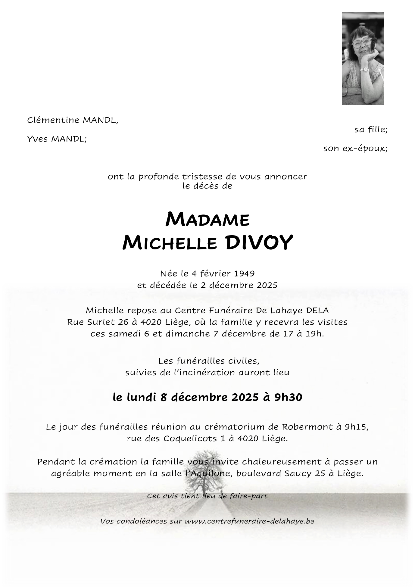 Died in Liège (4000) on 02 December 2025 at the age of 76 years