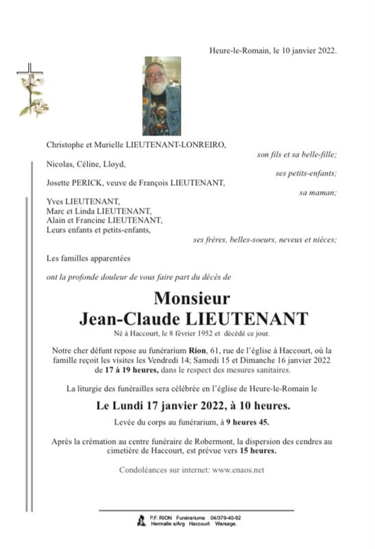 Monsieur Jean-Claude LIEUTENANT