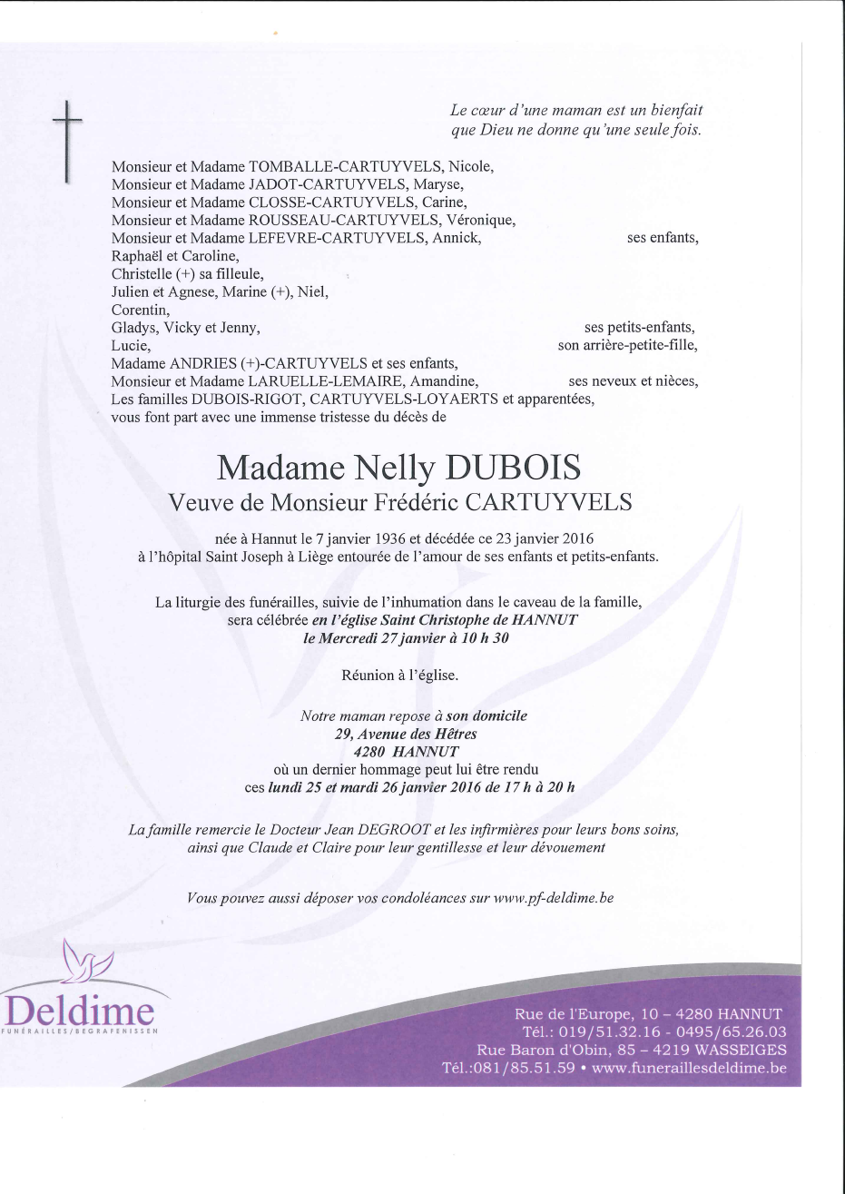 Viuda de Monsieur Frédéric CARTUYVELS