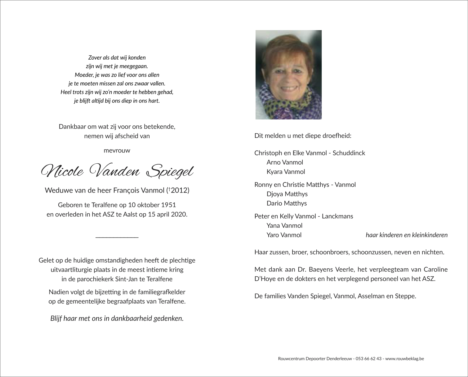 Overleden te Aalst (9300) op woensdag 15 april 2020 op 68-jarige leeftijd