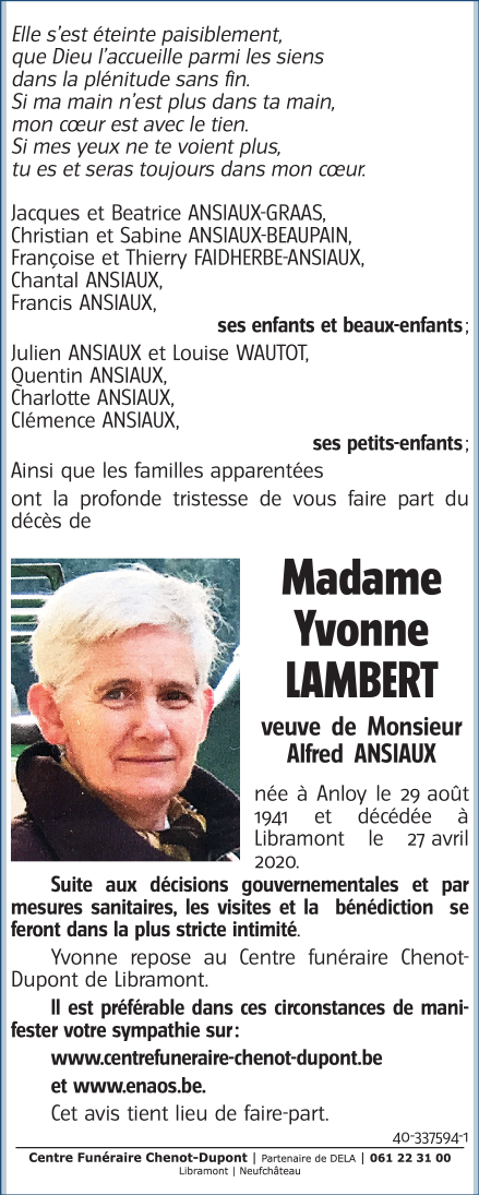 Madame Yvonne LAMBERT