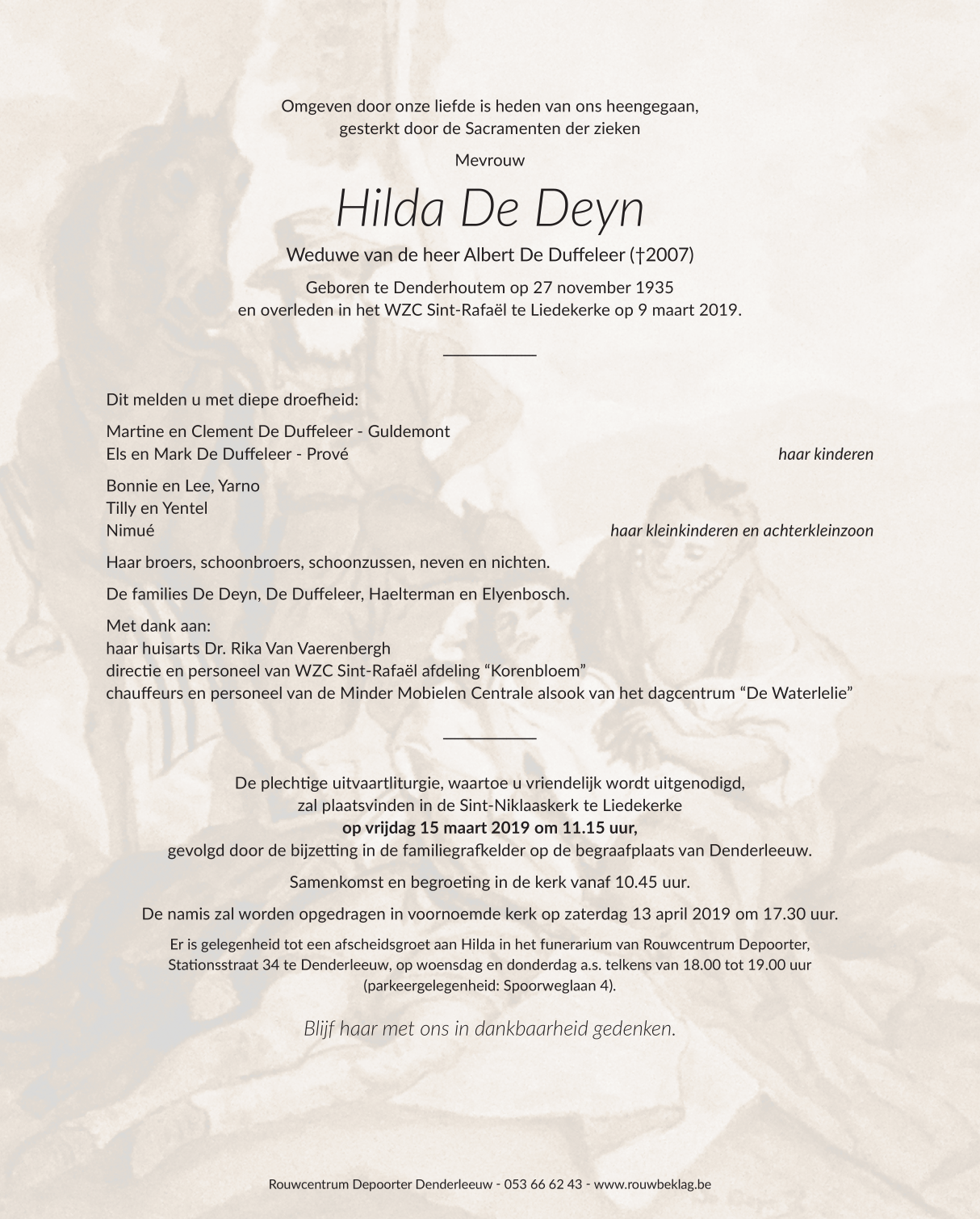 Overleden te Liedekerke (1770) op zaterdag 9 maart 2019 op 83-jarige leeftijd