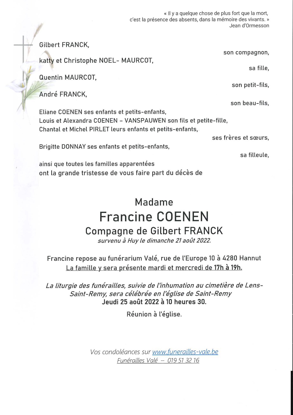 Compagne de Monsieur Gilbert FRANCK