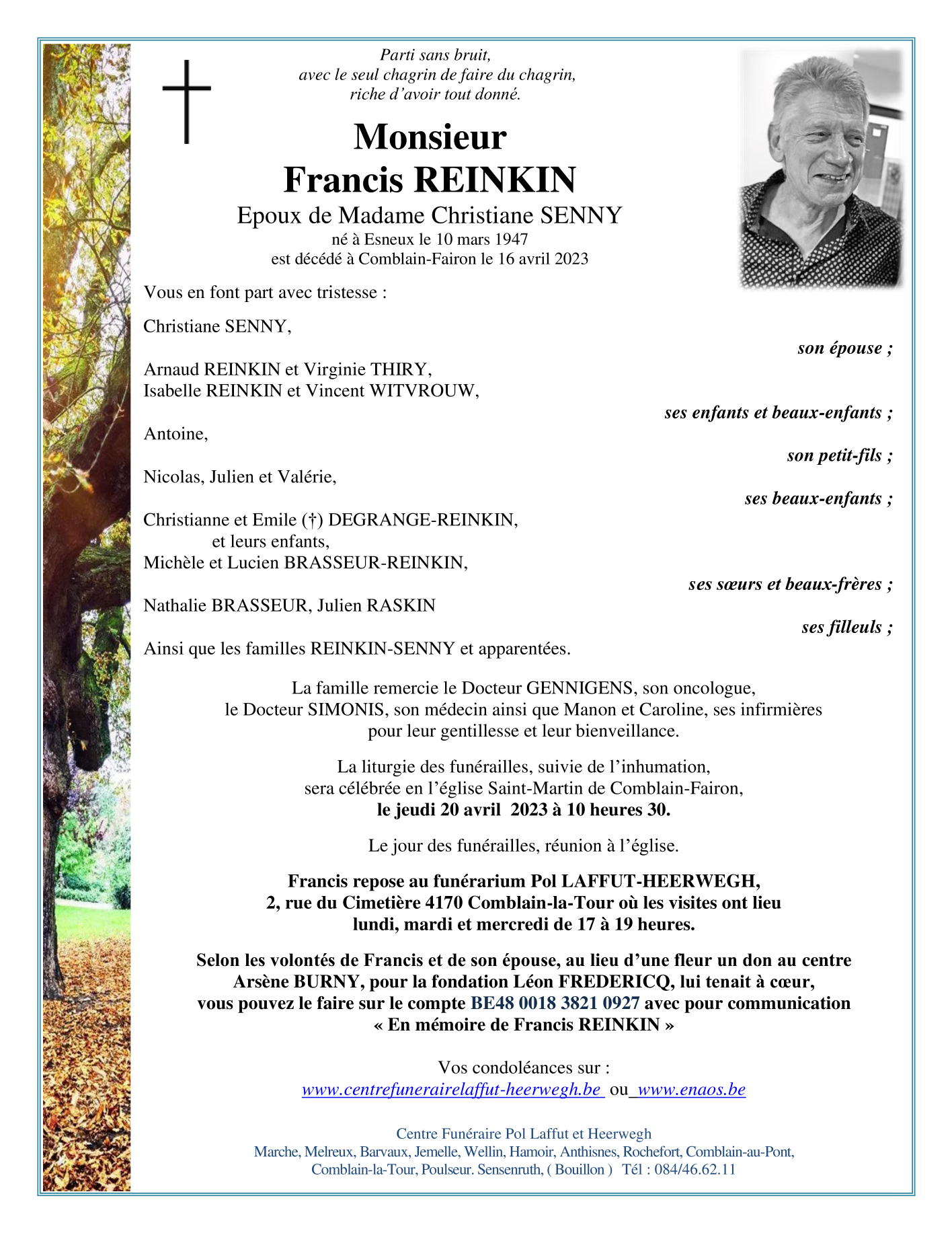 Fallecido en Comblain-Fairon (4180) el domingo, 16 de abril de 2023 a la edad de 76 años