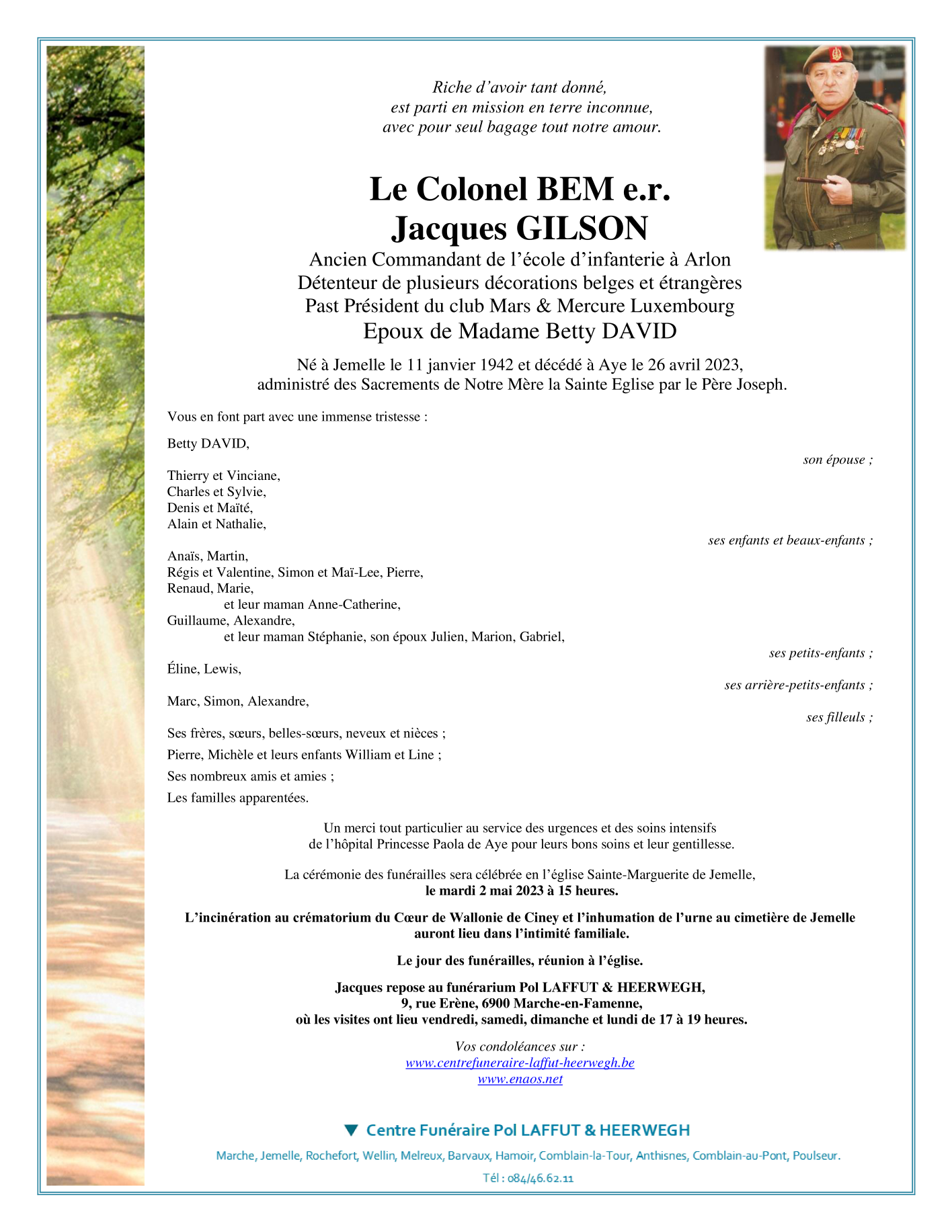 Died in Aye (6900) on 26 April 2023 at the age of 81 years