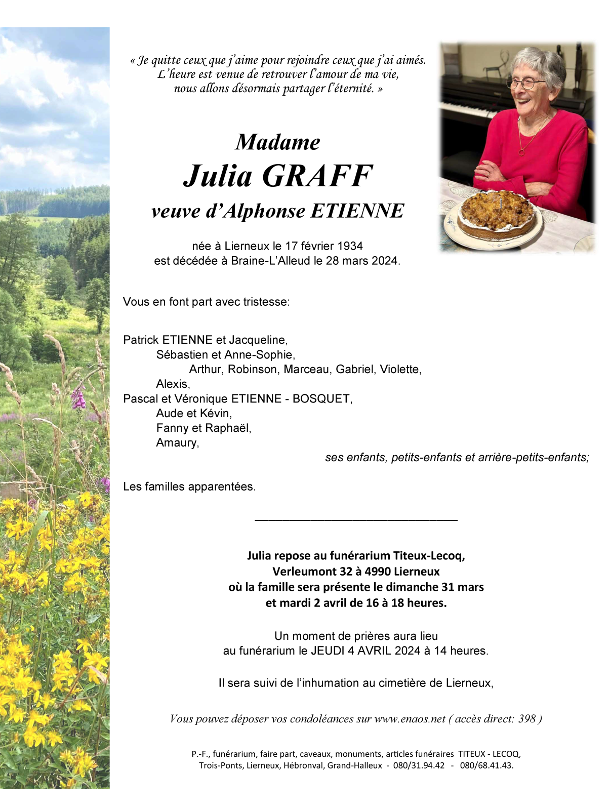 Died in Braine-l'Alleud (1420) on 28 March 2024 at the age of 90 years