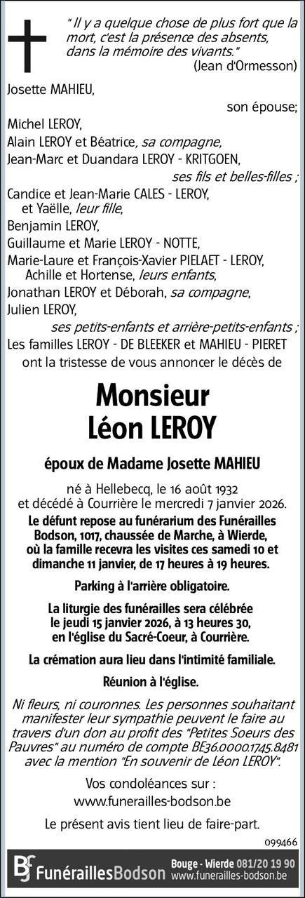 Fallecido en Courrière (5336) el miércoles, 7 de enero de 2026 a la edad de 93 años
