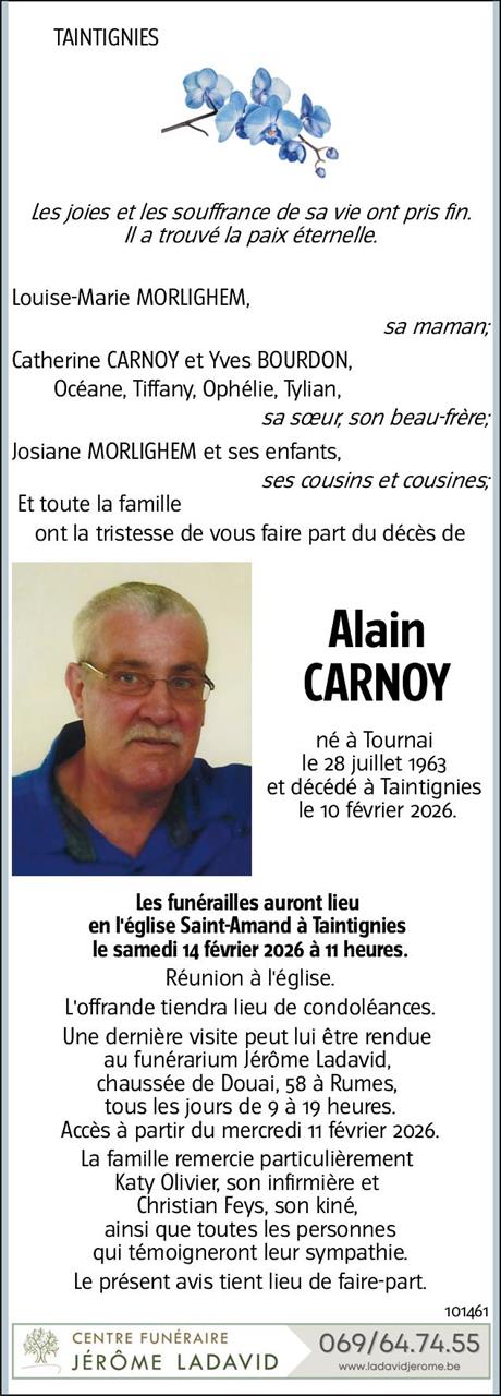 Fallecido en Taintignies (7618) el martes, 10 de febrero de 2026 a la edad de 62 años