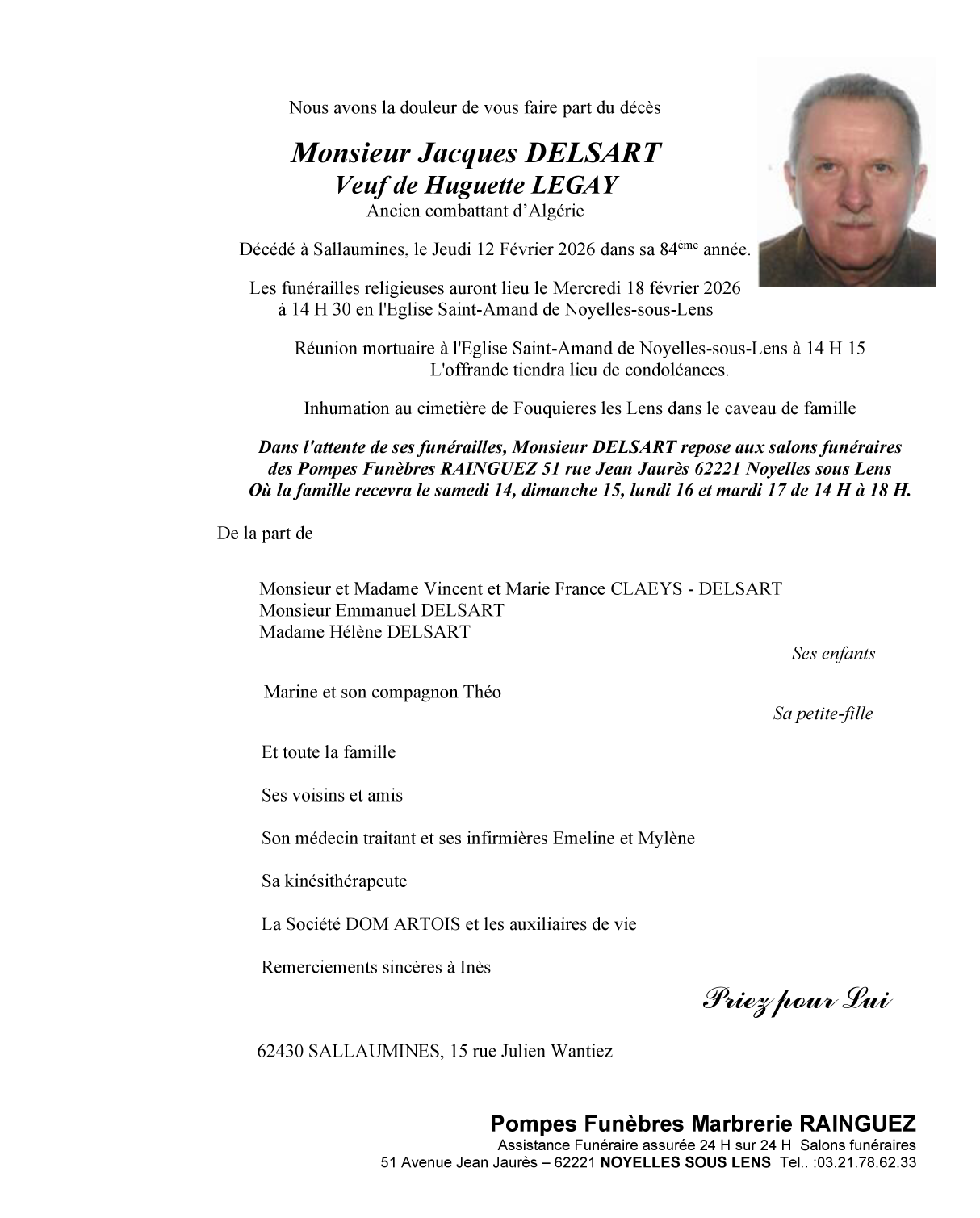 Died in Sallaumines (62430, France) on 12 February 2026 at the age of 83 years