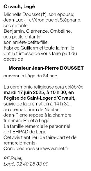 Décédé à Legé (44650, France) le mercredi 11 juin 2025 à l'âge de 84 ans