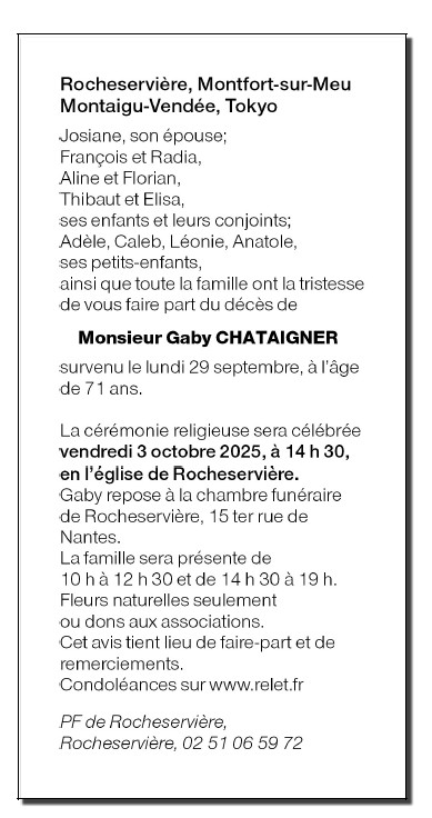 Fallecido en Cugand (85610, Francia) el lunes, 29 de septiembre de 2025 a la edad de 71 años