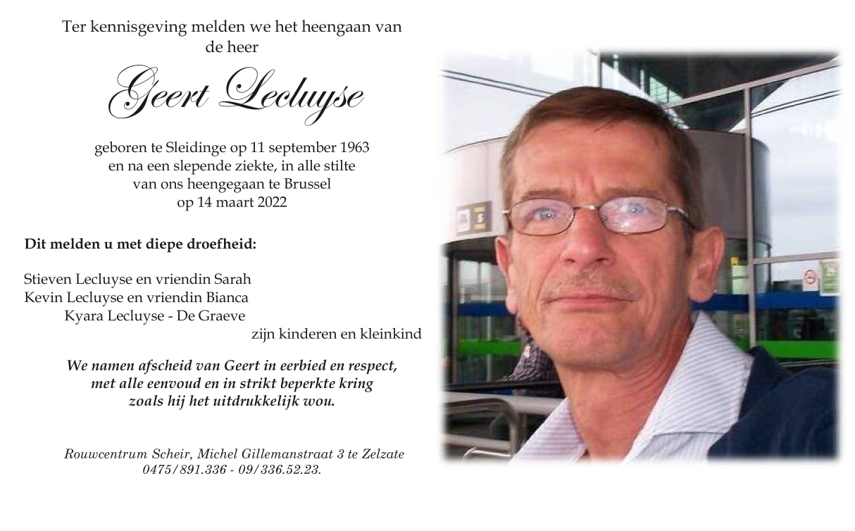 Died in Brussel (1000) on 14 March 2022 at the age of 58 years