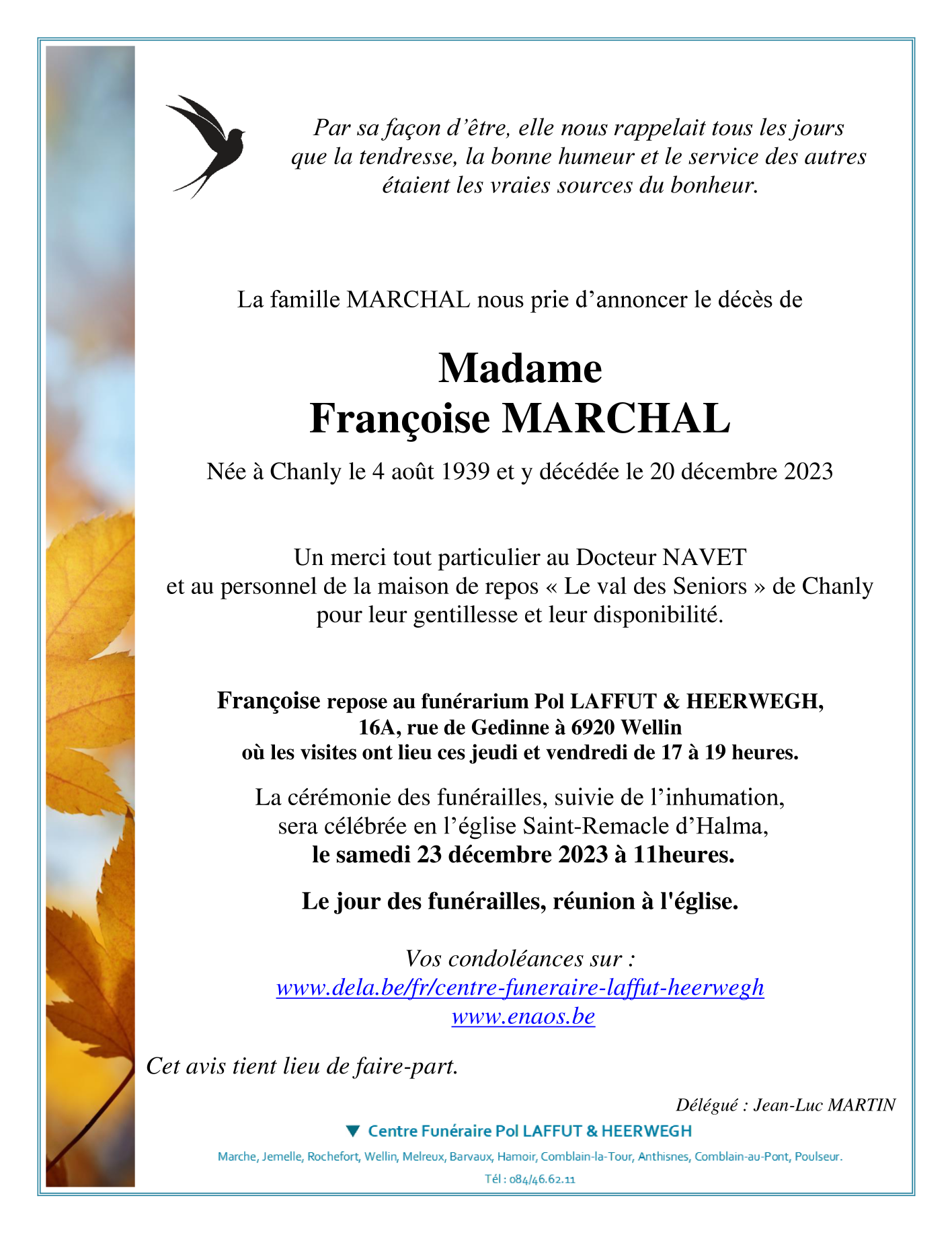Overleden te Chanly (6921) op woensdag 20 december 2023 op 84-jarige leeftijd