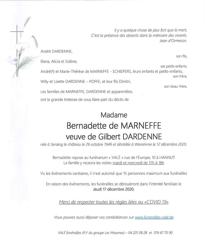 Madame Bernadette DARDENNE geboren de MARNEFFE
