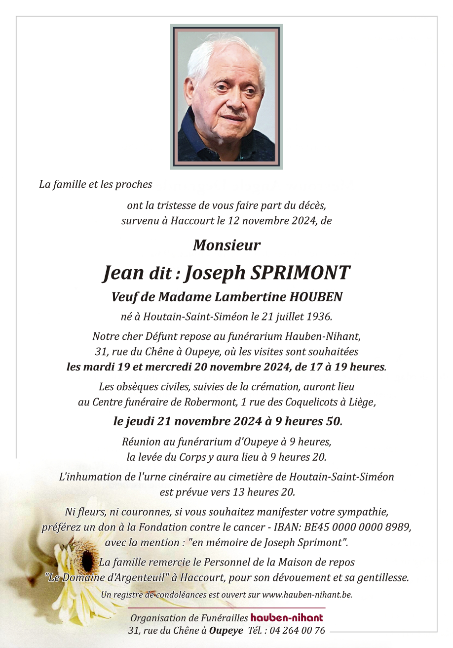 Monsieur Jean dit : Joseph SPRIMONT