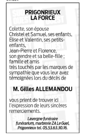 Décédé à Bergerac (24100, France) le mardi 6 janvier 2026 à l'âge de 79 ans