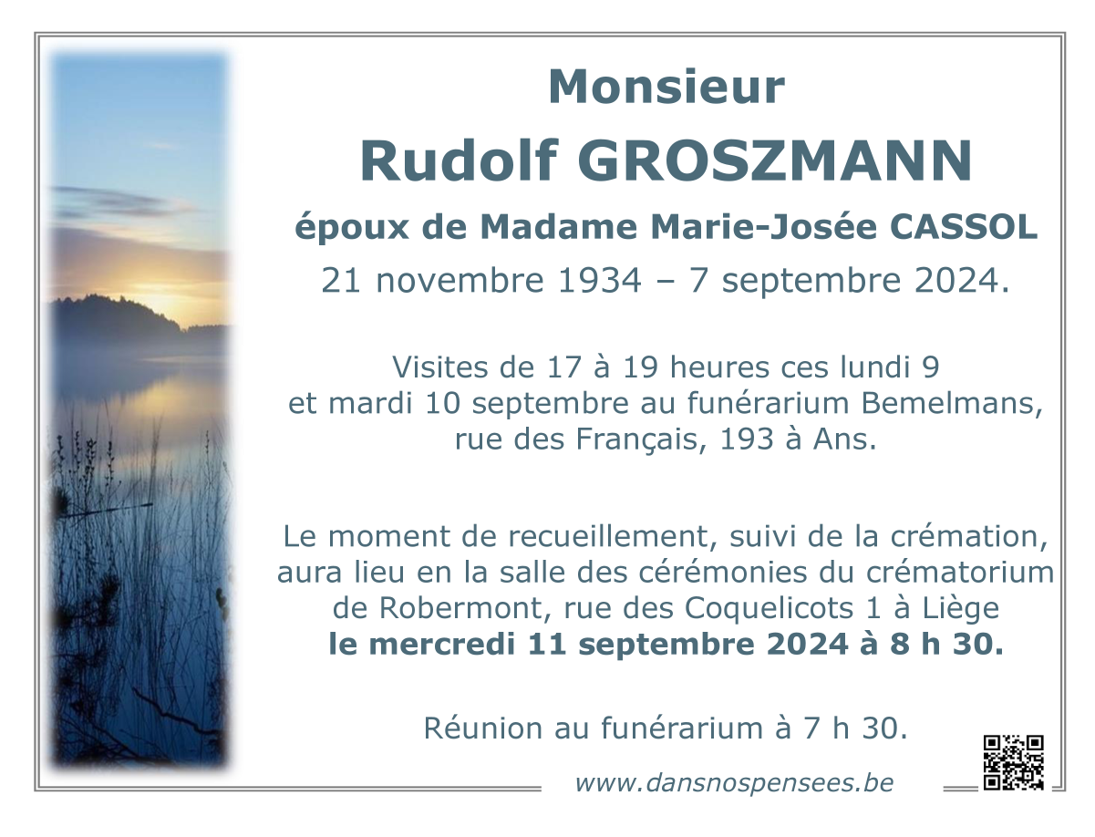 Décédé à Liège (4020) le samedi 7 septembre 2024 à l'âge de 89 ans