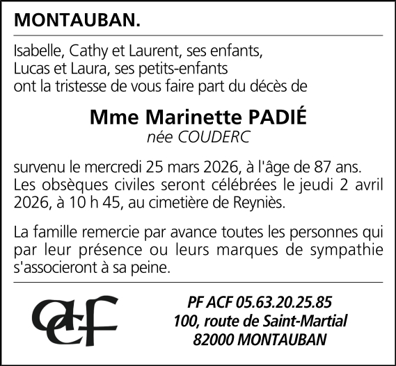 Madame Marinette PADIÉ née COUDERC