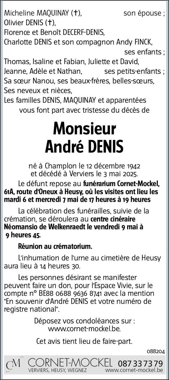 Overleden te Verviers (4800) op zaterdag 3 mei 2025 op 82-jarige leeftijd
