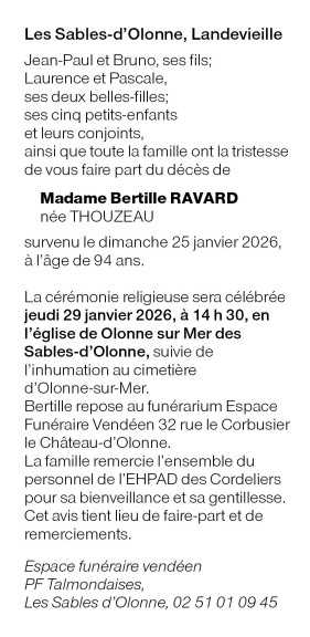 Overleden te Les Sables d'Olonne (85340, Frankrijk) op zondag 25 januari 2026 op 94-jarige leeftijd