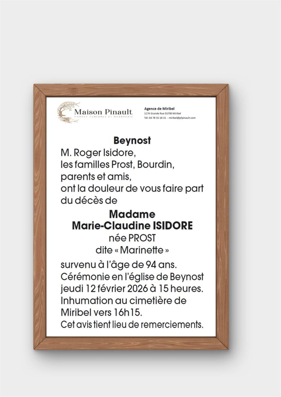 Madame Marie-Claudine ISIDORE née PROST
