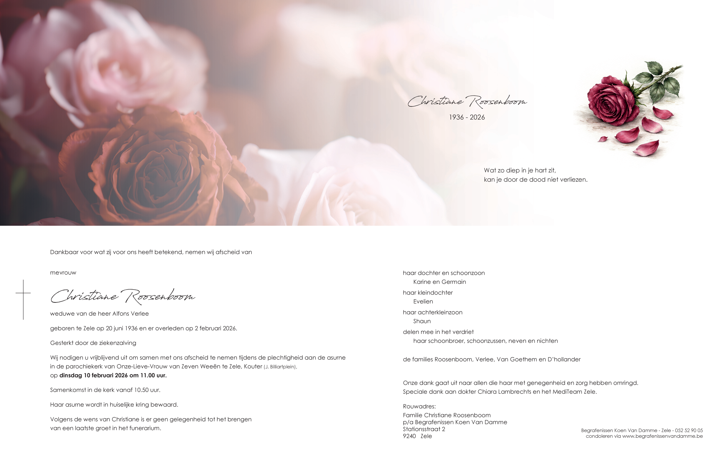 Overleden te Zele (9240) op maandag 2 februari 2026 op 89-jarige leeftijd