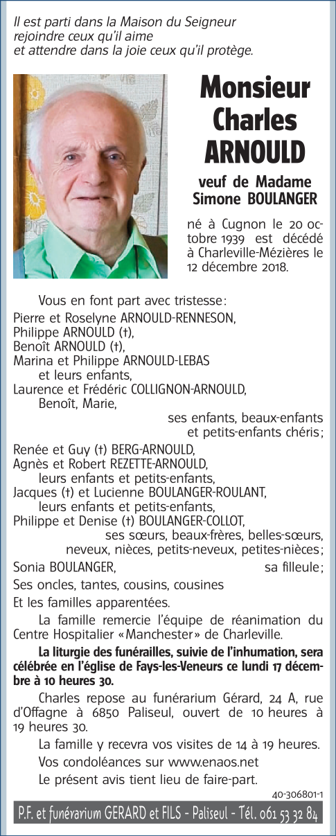 Fallecido en Charleville (08000, Francia) el miércoles, 12 de diciembre de 2018 a la edad de 79 años