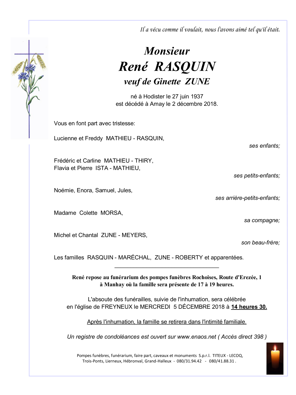 Overleden te Amay (4540) op zondag 2 december 2018 op 81-jarige leeftijd