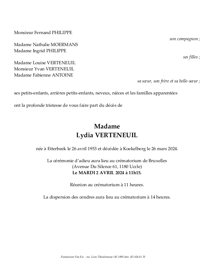 Overleden te Bruxelles (Koekelberg) (1081) op dinsdag 26 maart 2024 op 70-jarige leeftijd