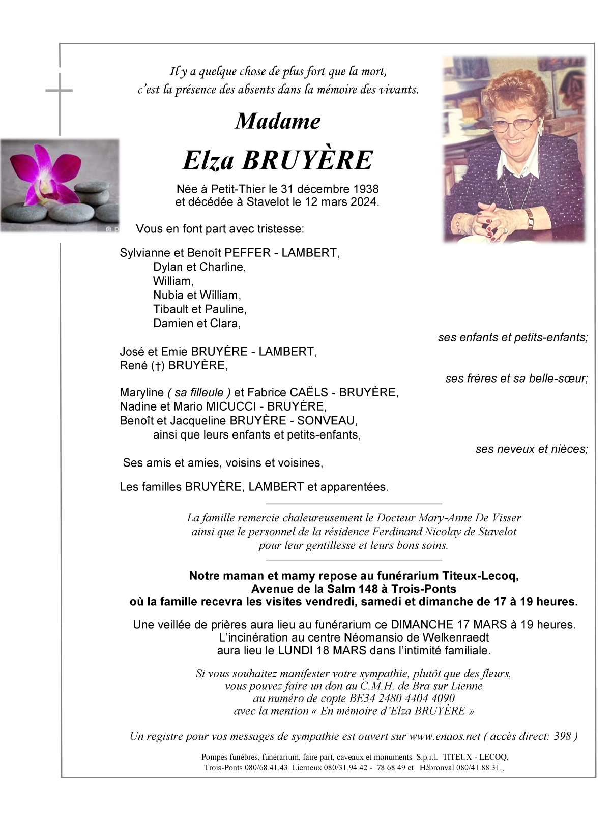 Overleden te Stavelot (4970) op dinsdag 12 maart 2024 op 85-jarige leeftijd