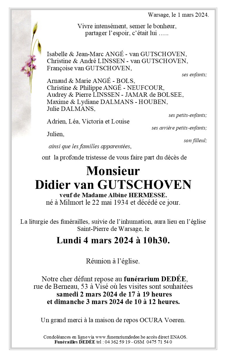 Overleden te Fouron-le-Comte (3798) op vrijdag 1 maart 2024 op 89-jarige leeftijd
