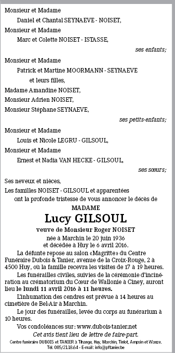 Overleden te Huy (4500) op woensdag 6 april 2016 op 79-jarige leeftijd