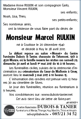 Décédé à Huy (4500) le vendredi 28 avril 2017 à l'âge de 76 ans