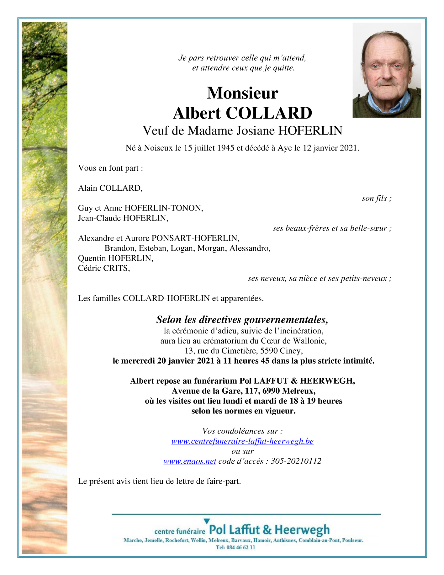 Né à Noiseux (5377) le dimanche 15 juillet 1945