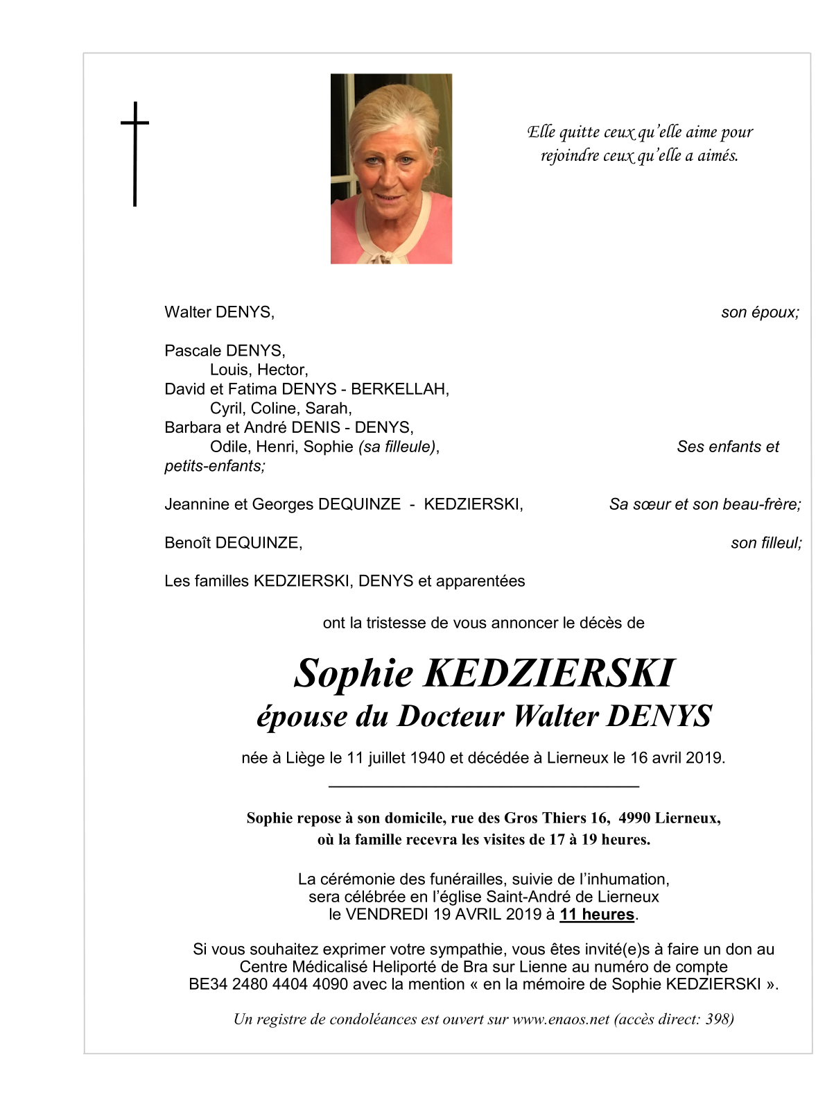 Fallecido en Lierneux (4990) el martes, 16 de abril de 2019 a la edad de 78 años