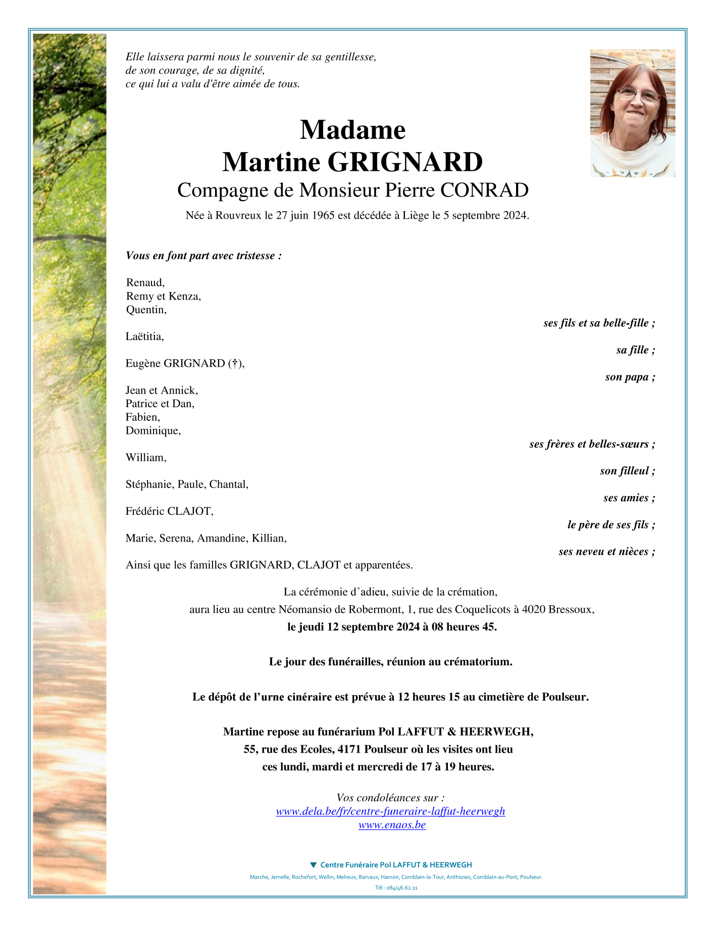 Décédée à Liège (4000) le jeudi 5 septembre 2024 à l'âge de 59 ans