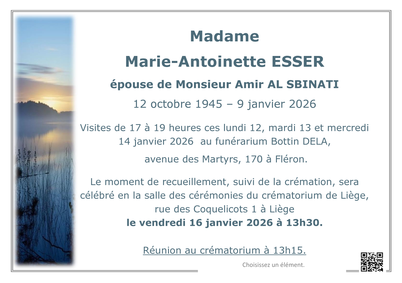 Décédée à Liège (4000) le vendredi 9 janvier 2026 à l'âge de 80 ans