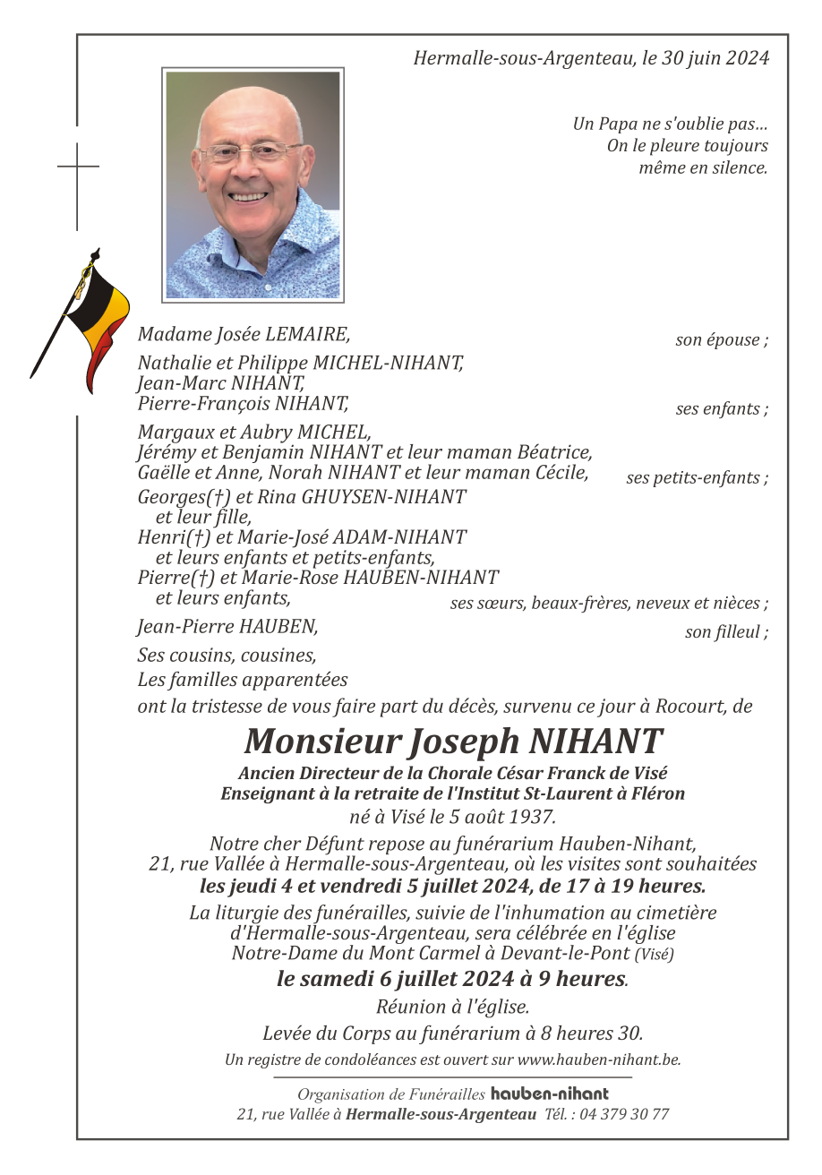 Décédé à Rocourt (4000) le dimanche 30 juin 2024 à l'âge de 86 ans