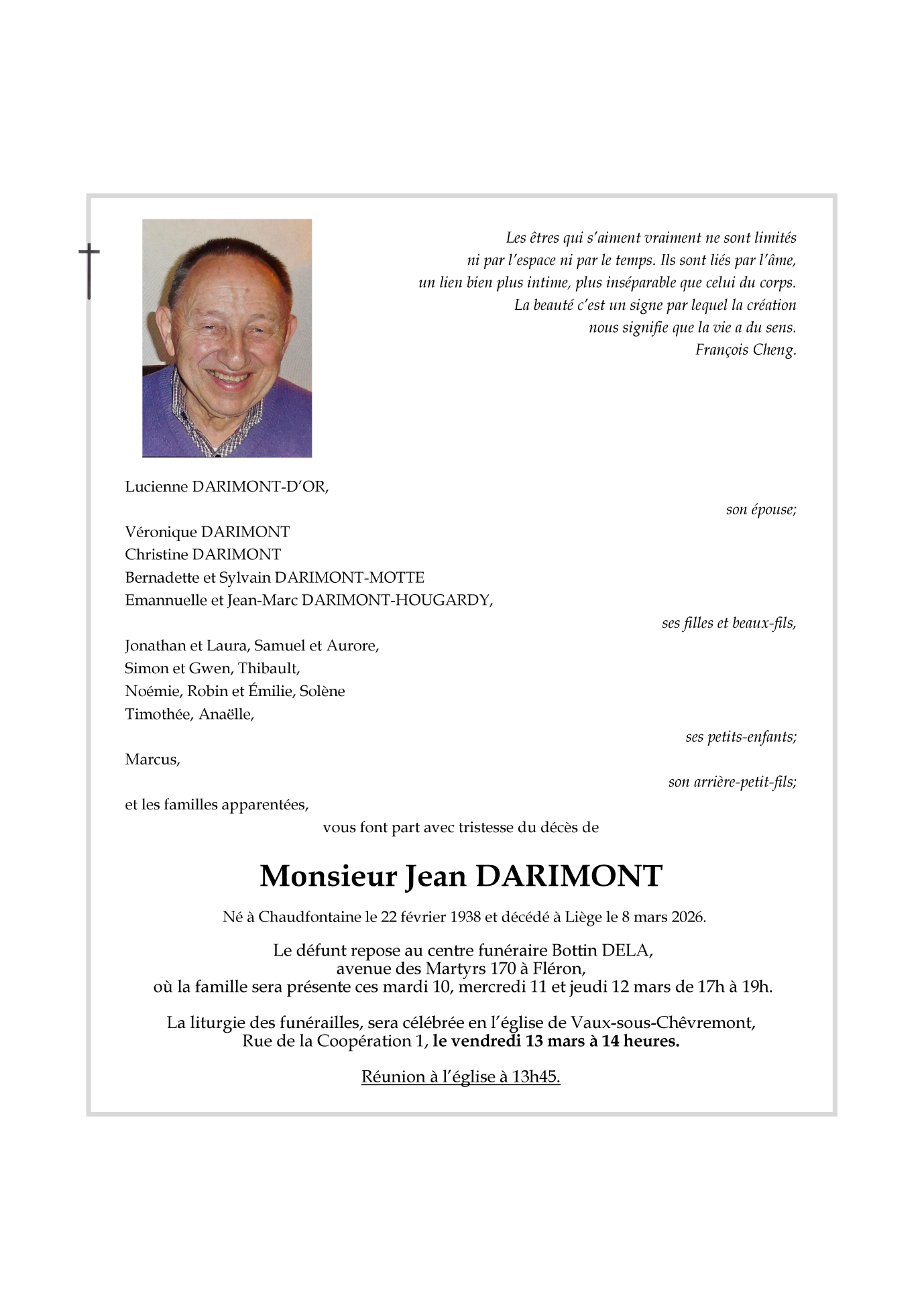 Fallecido en Liège (4020) el domingo, 8 de marzo de 2026 a la edad de 88 años